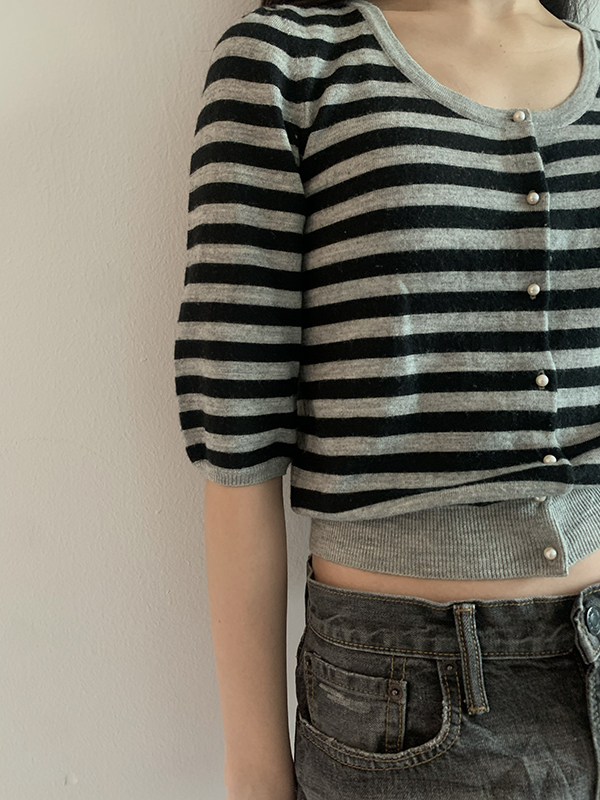 pearl button stripe cardigan