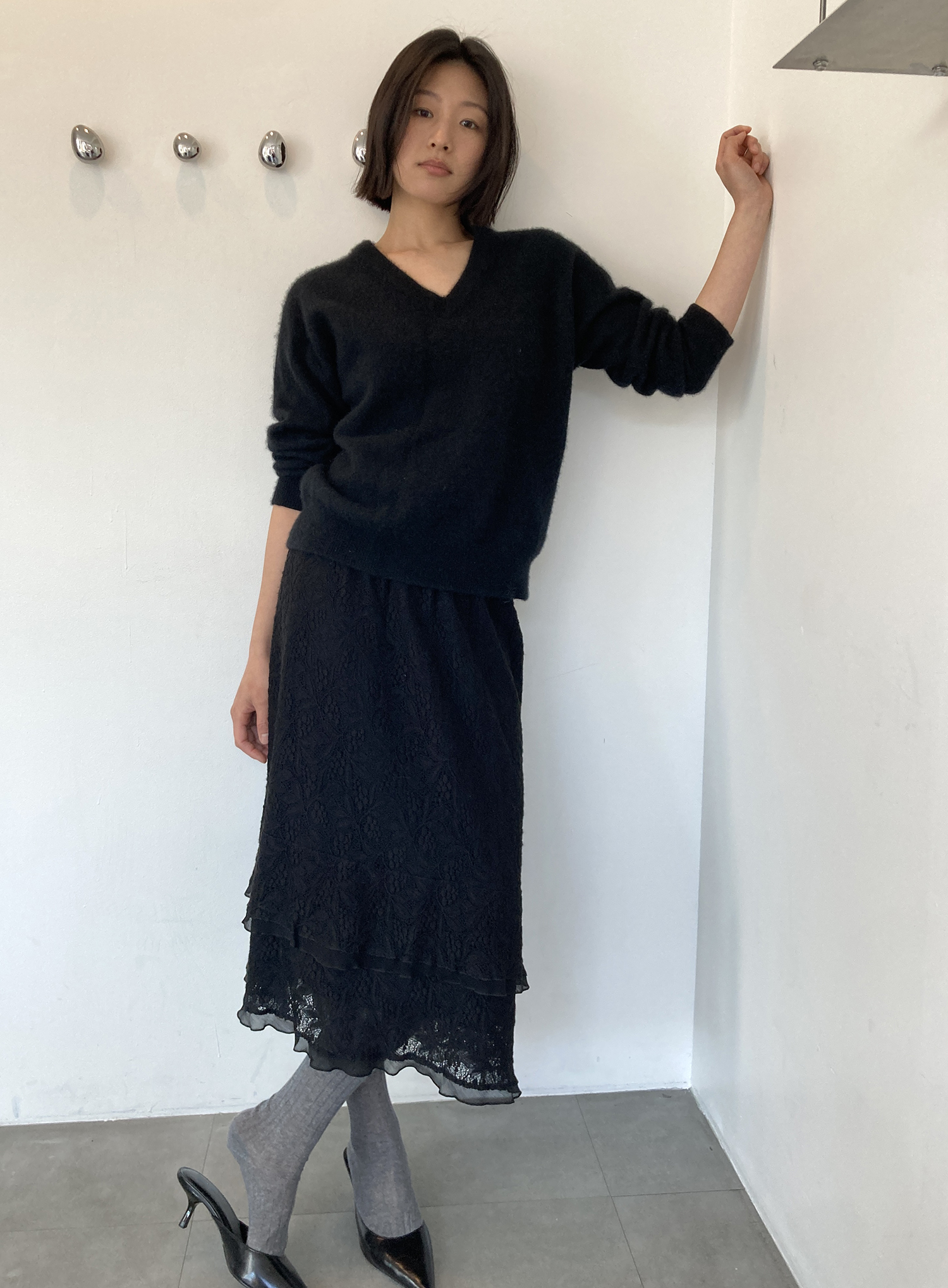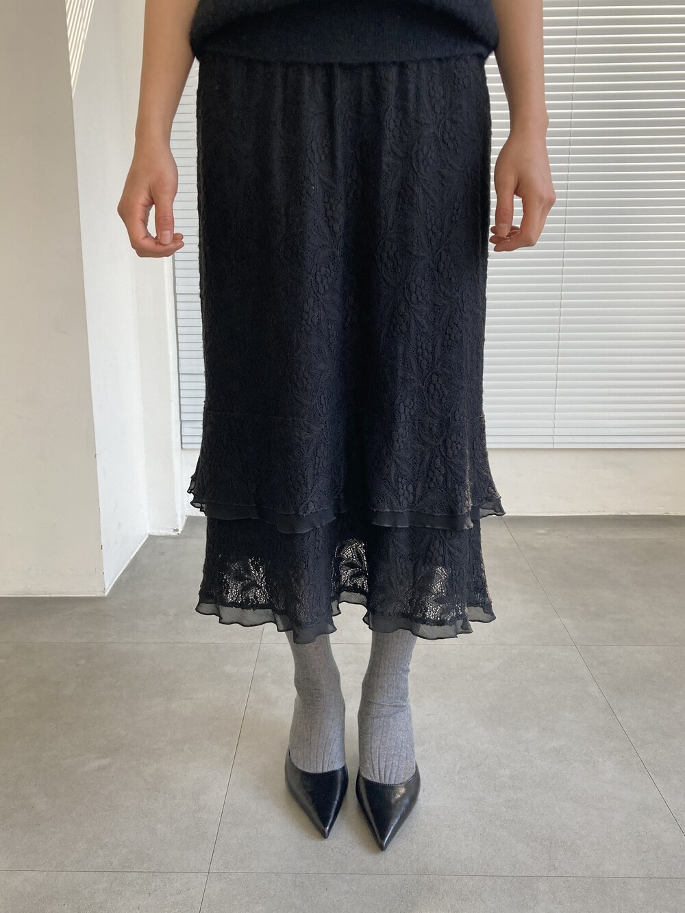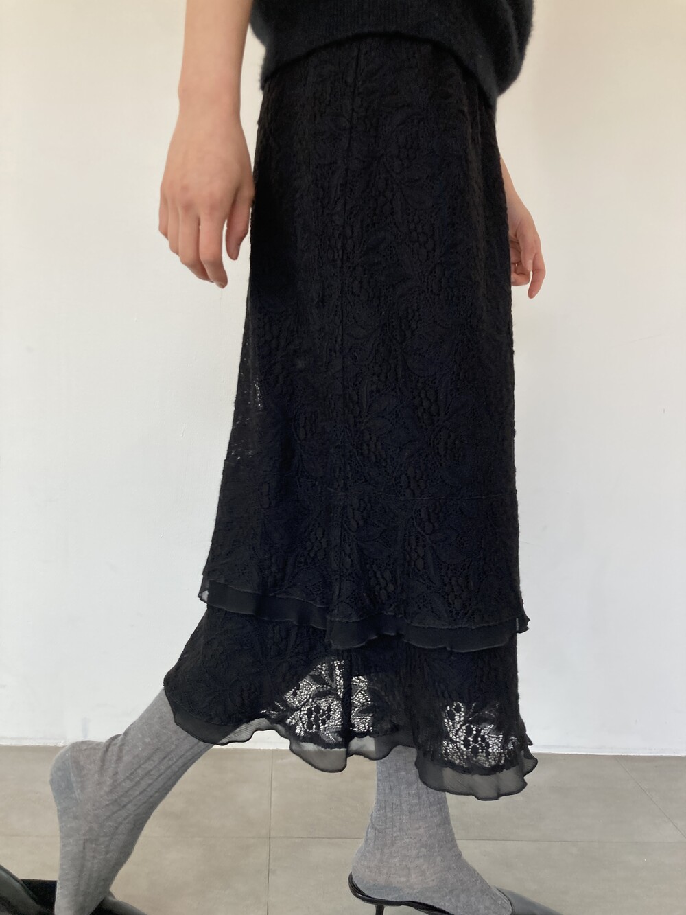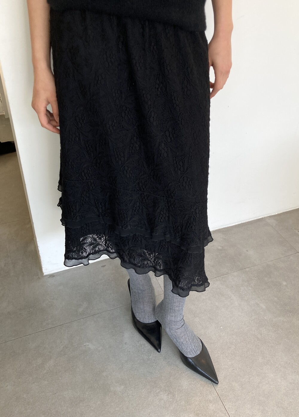 black lace layered skirt (ITALY MADE)