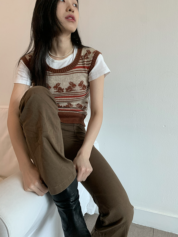 컬러감이 귀여운 토끼 패턴의 니트 베스트입니다.