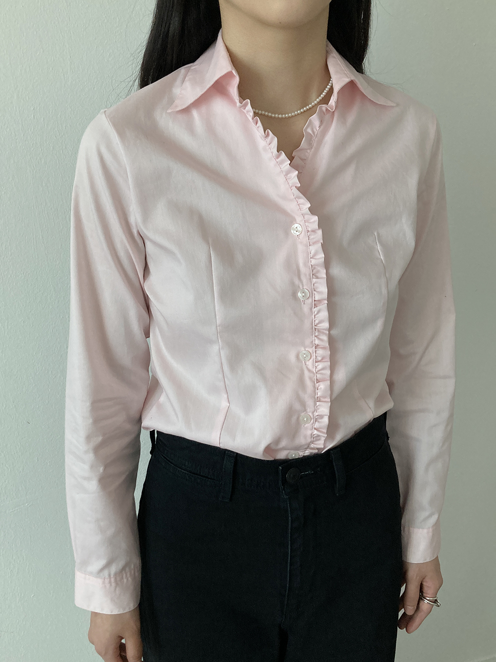 pink frill blouse