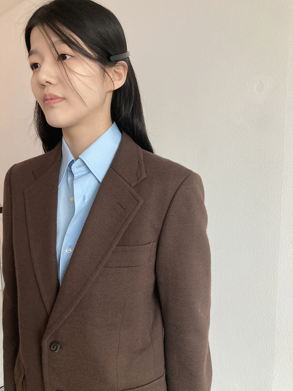 구조감이 느껴지는 HAGGAR의 브라운 울 자켓입니다.
