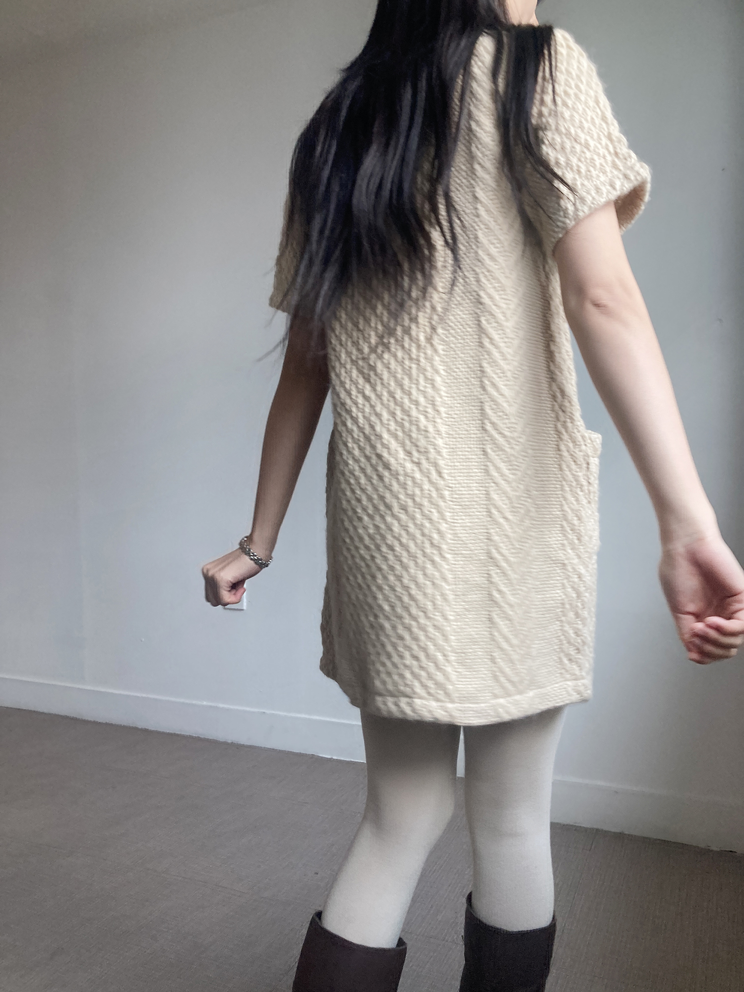 beige knit wool one-piece