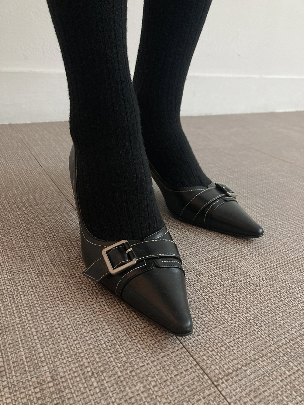블랙 레더 스틸레토 힐입니다.