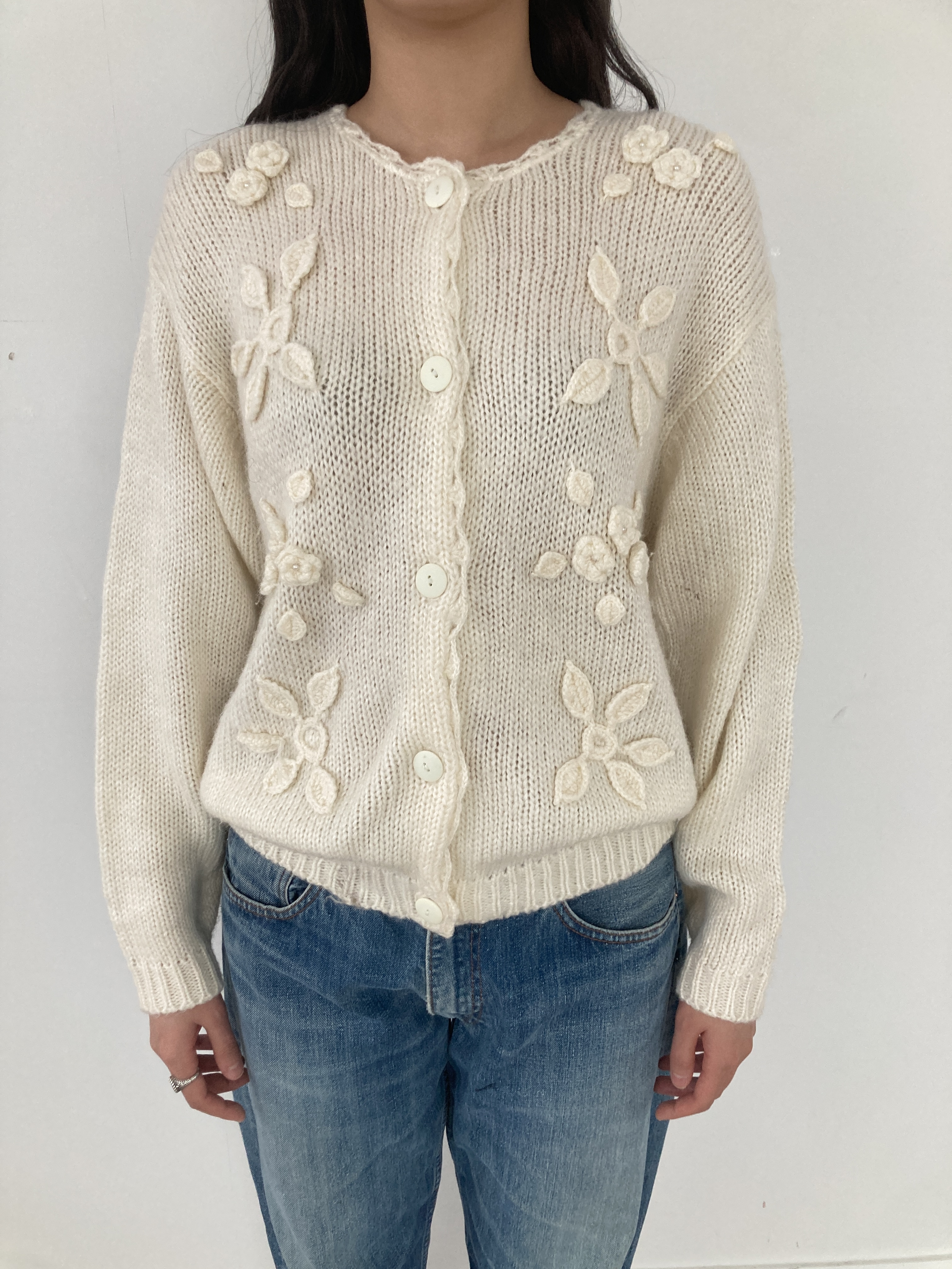 ivory roses knit cardigan (데미지)