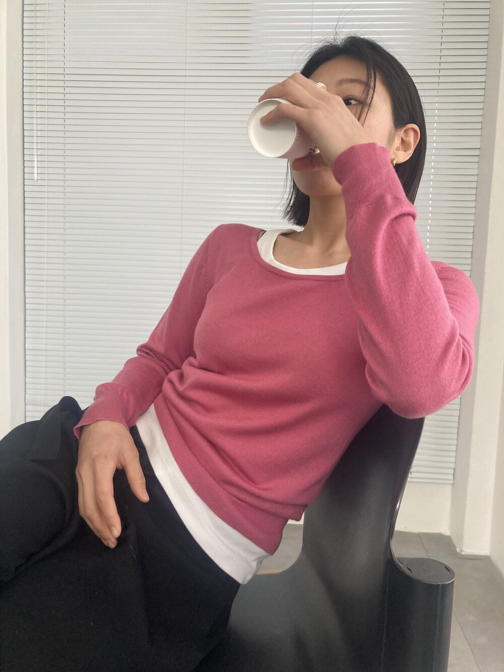 AGNES.B pink U-neck knit top