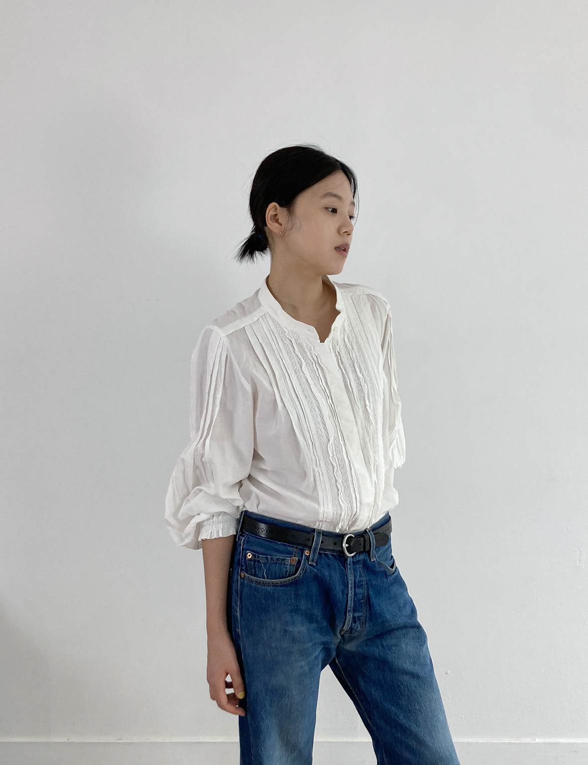 volume sleeve cotton blouse