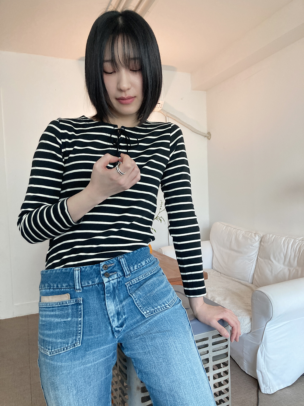 도톰한 코튼 원단에 스트라이프 티셔츠입니다.