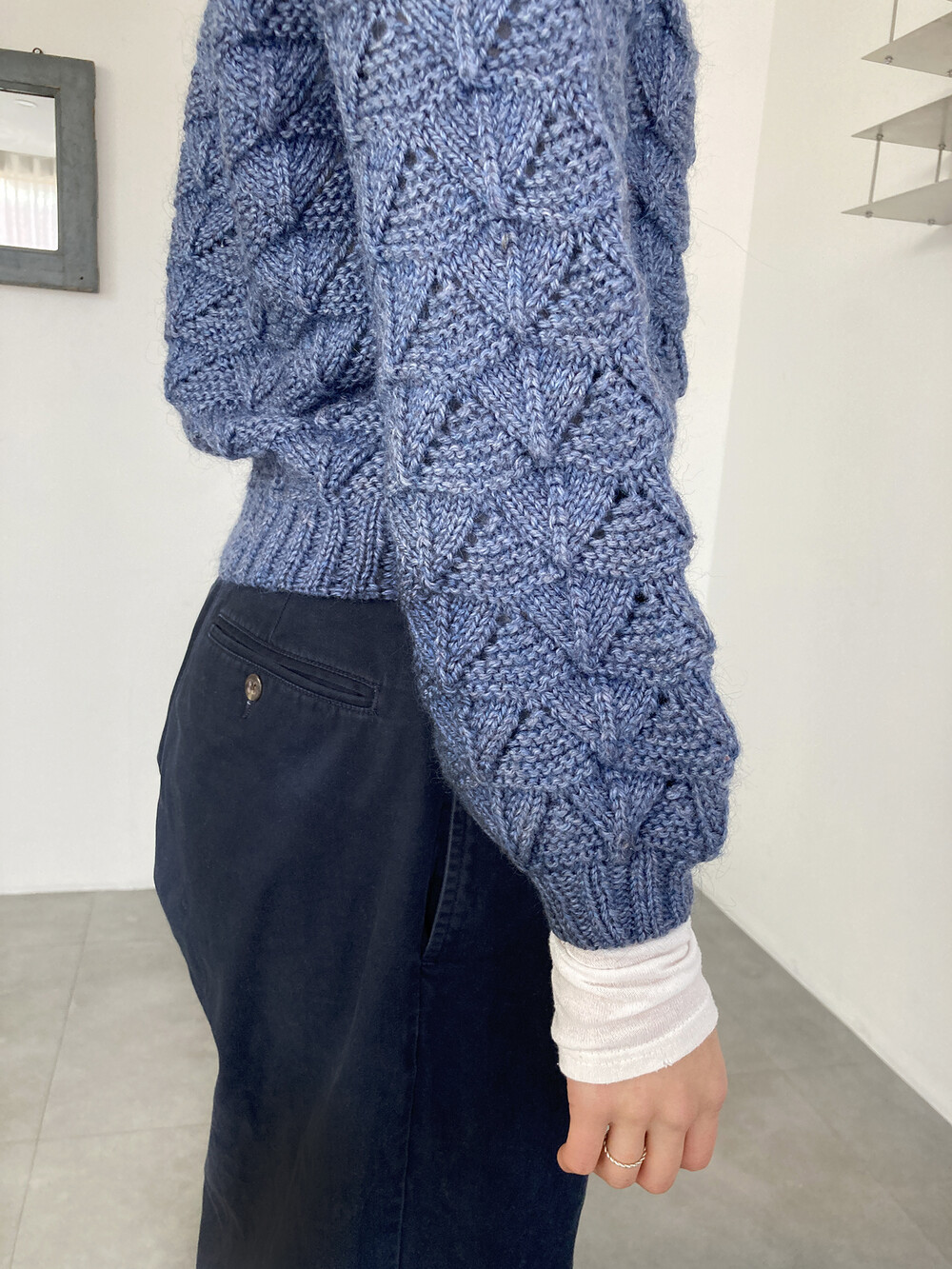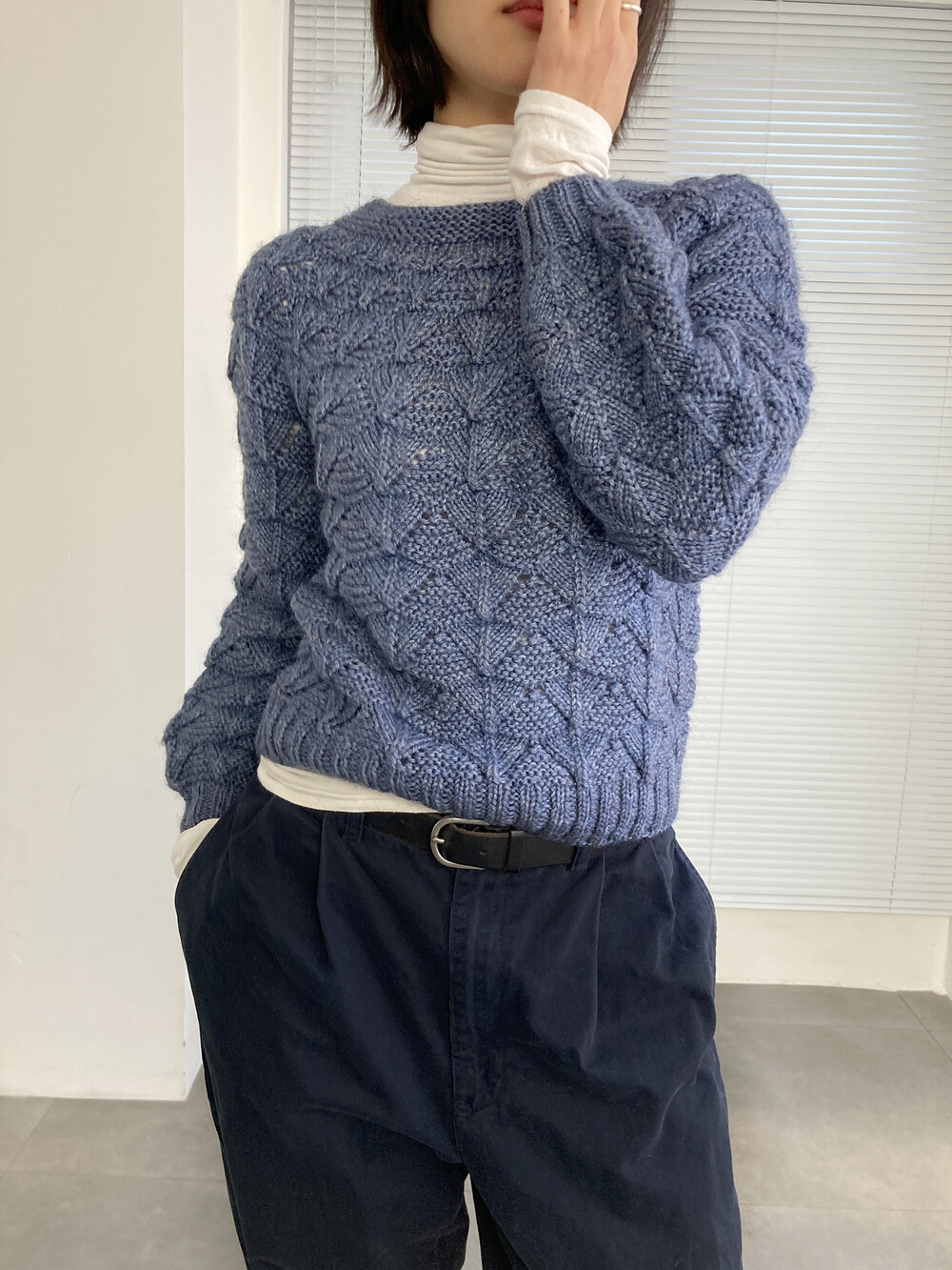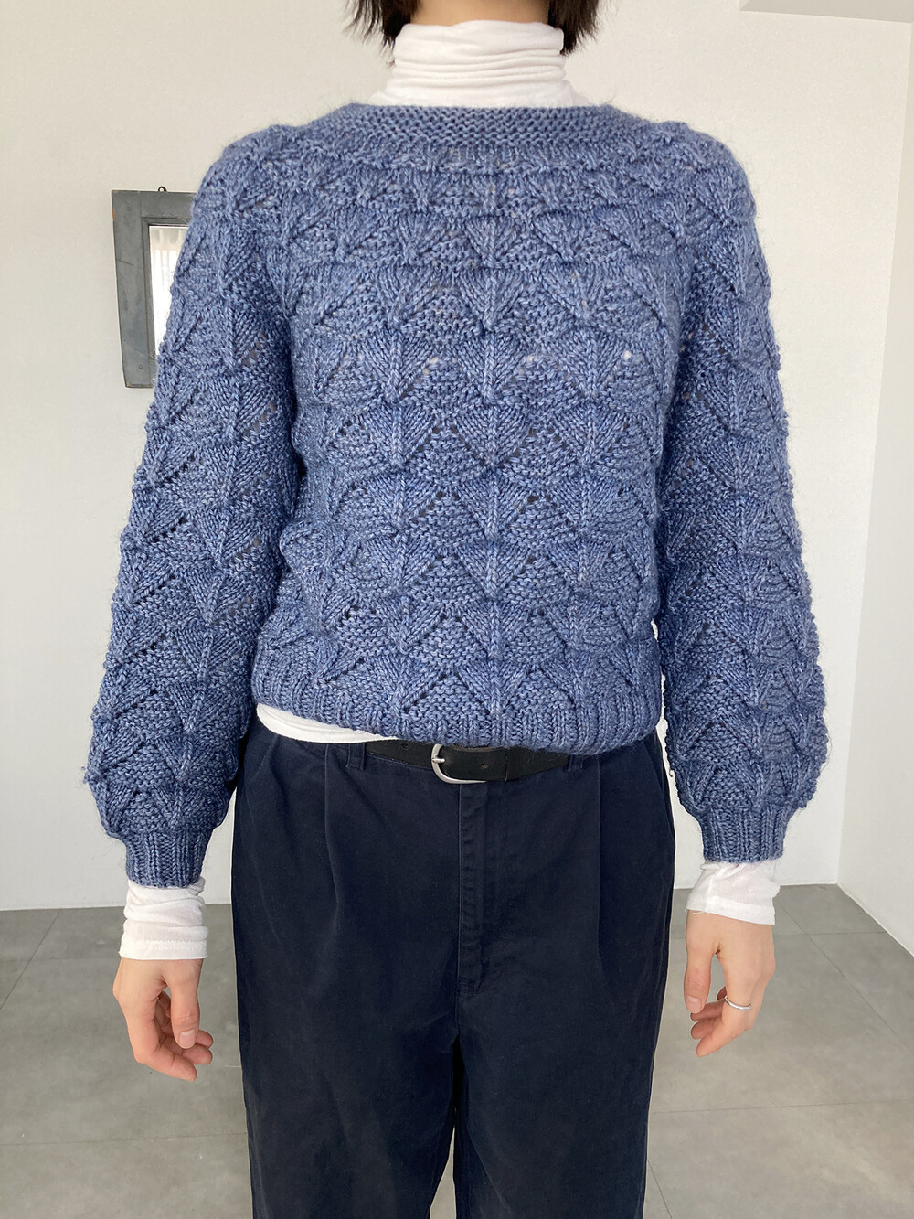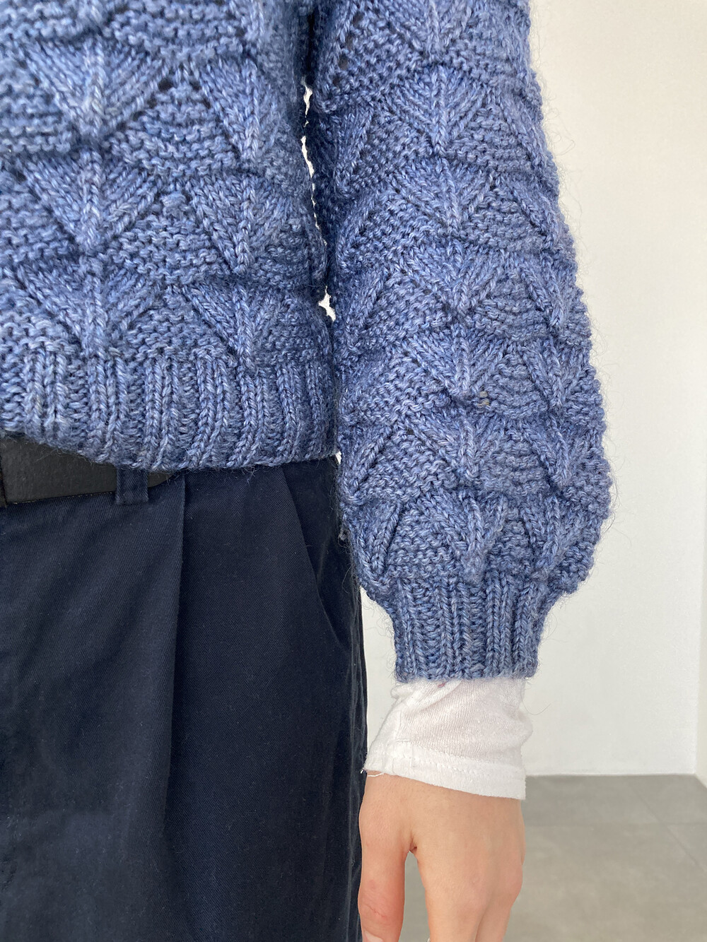 hand knit cable texture blue knit