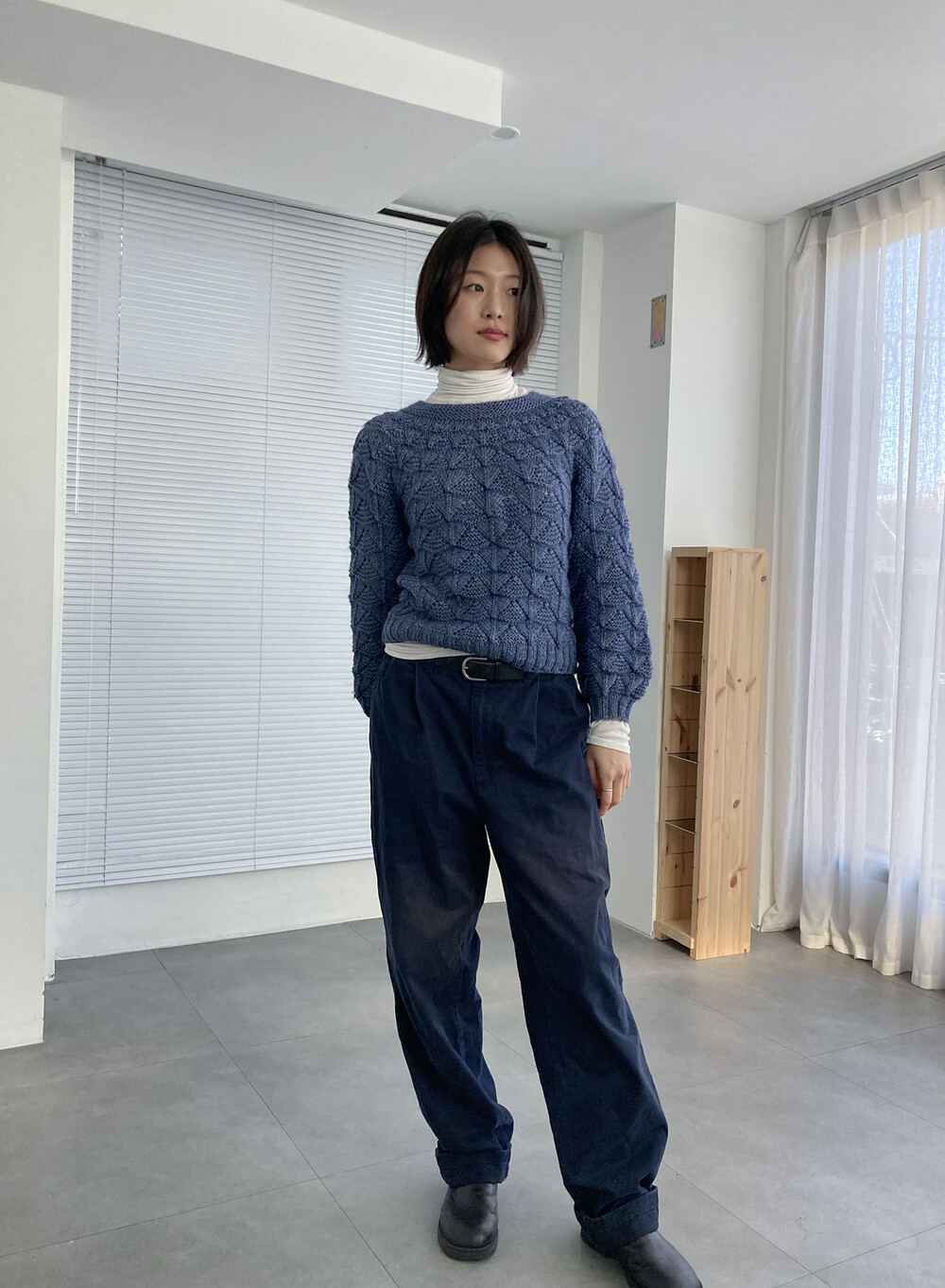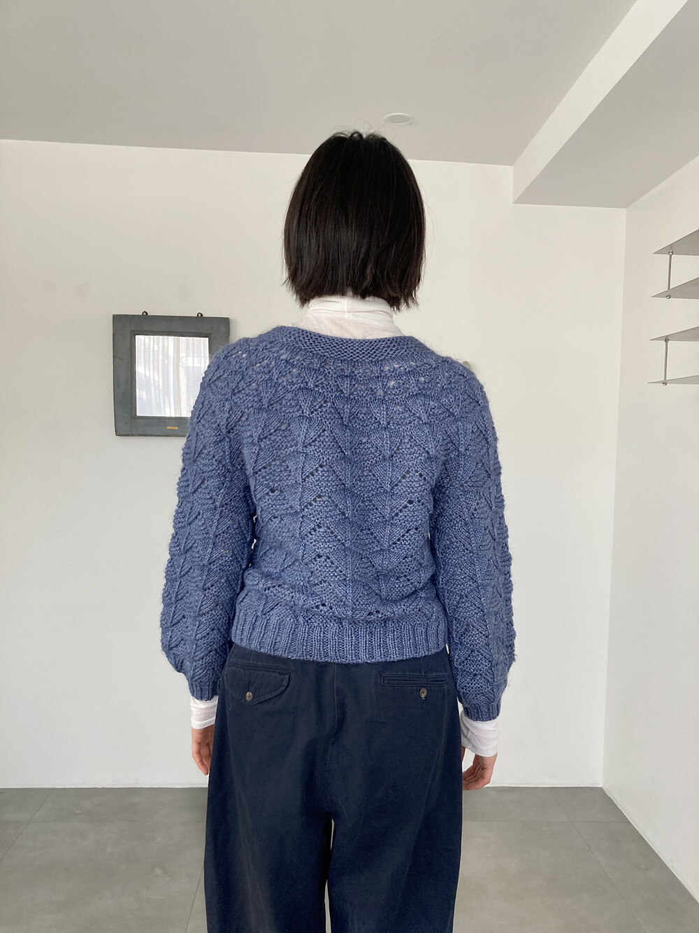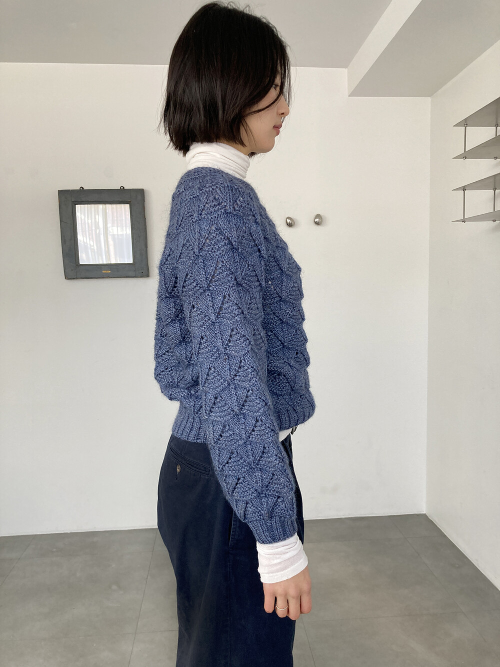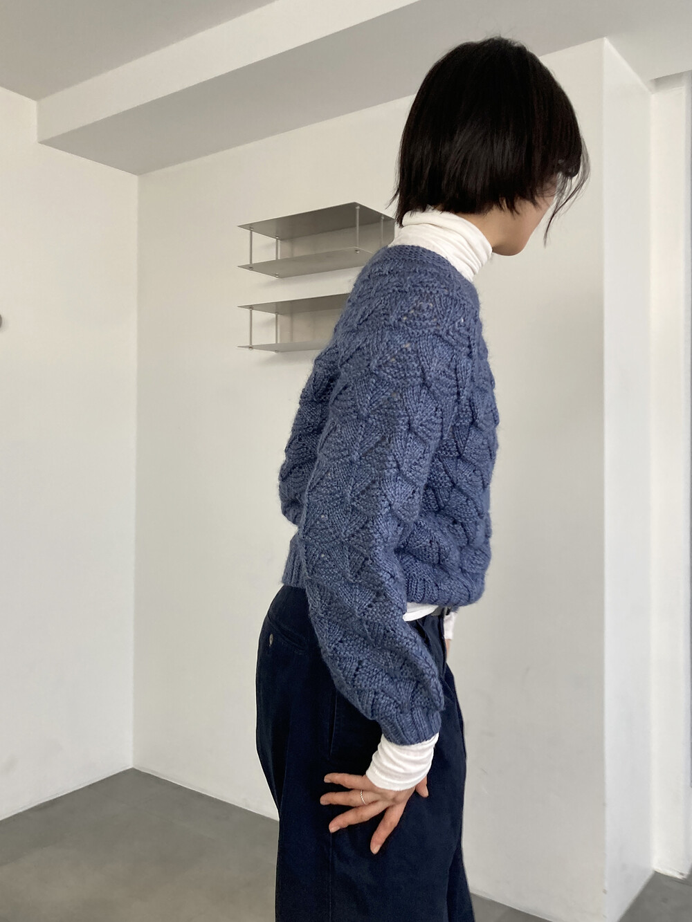 hand knit cable texture blue knit