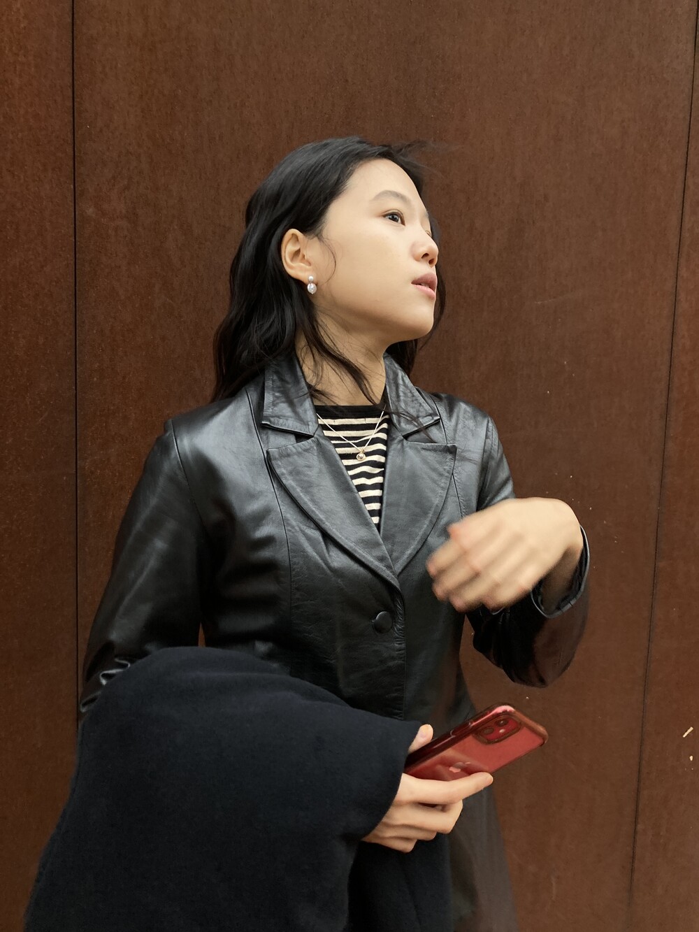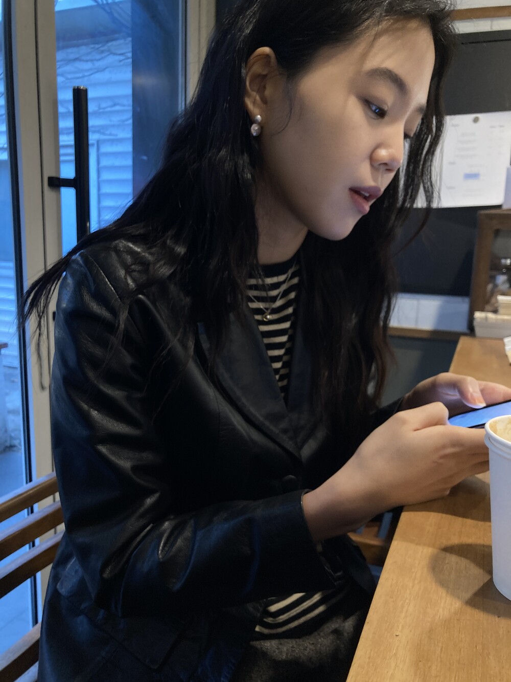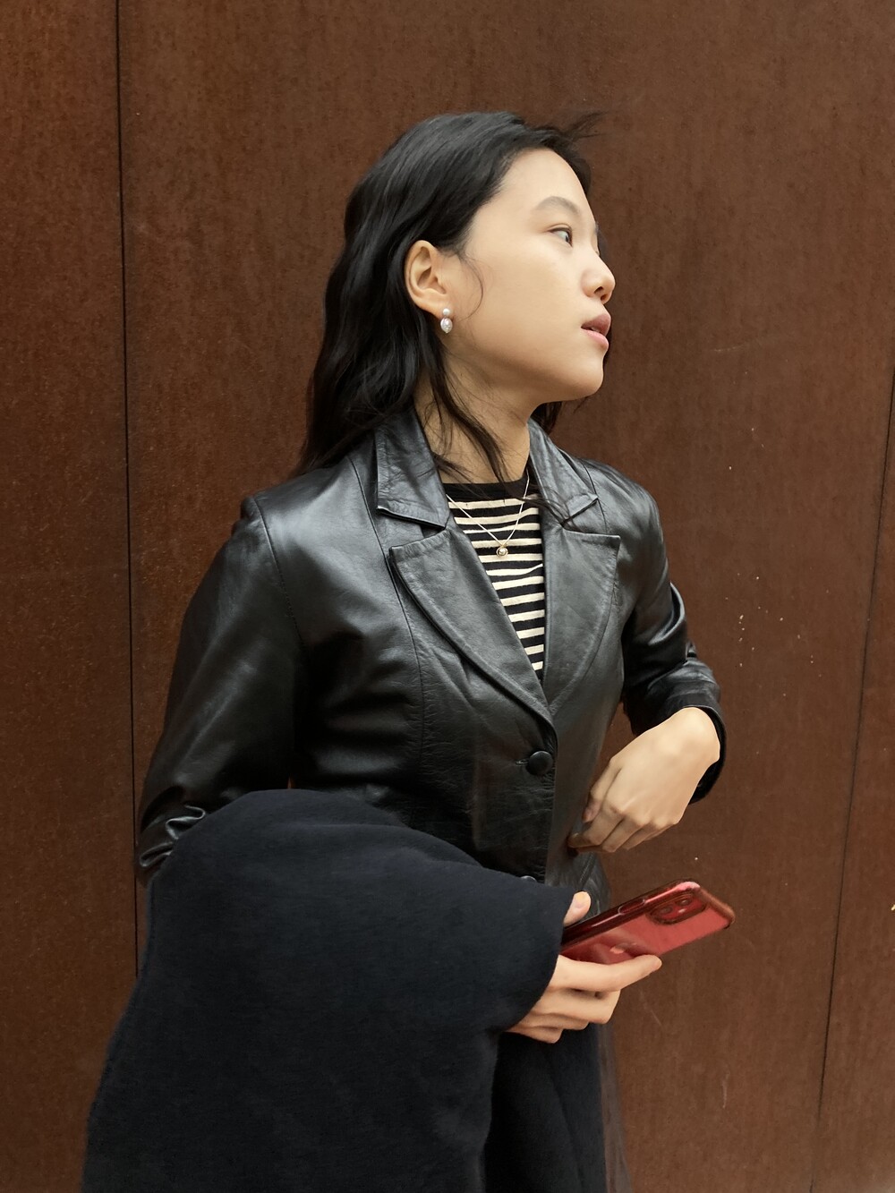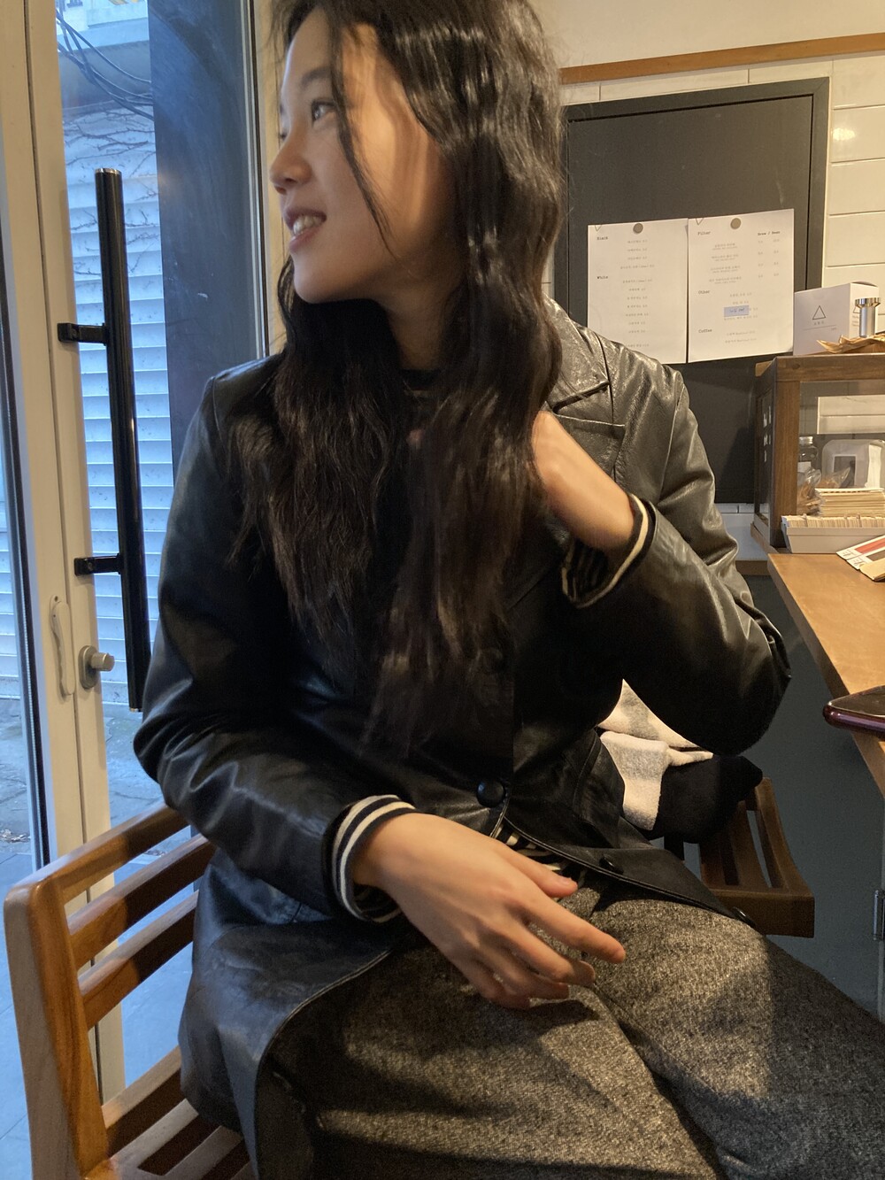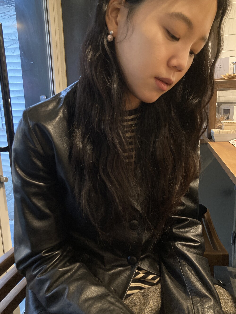 black leather jacket