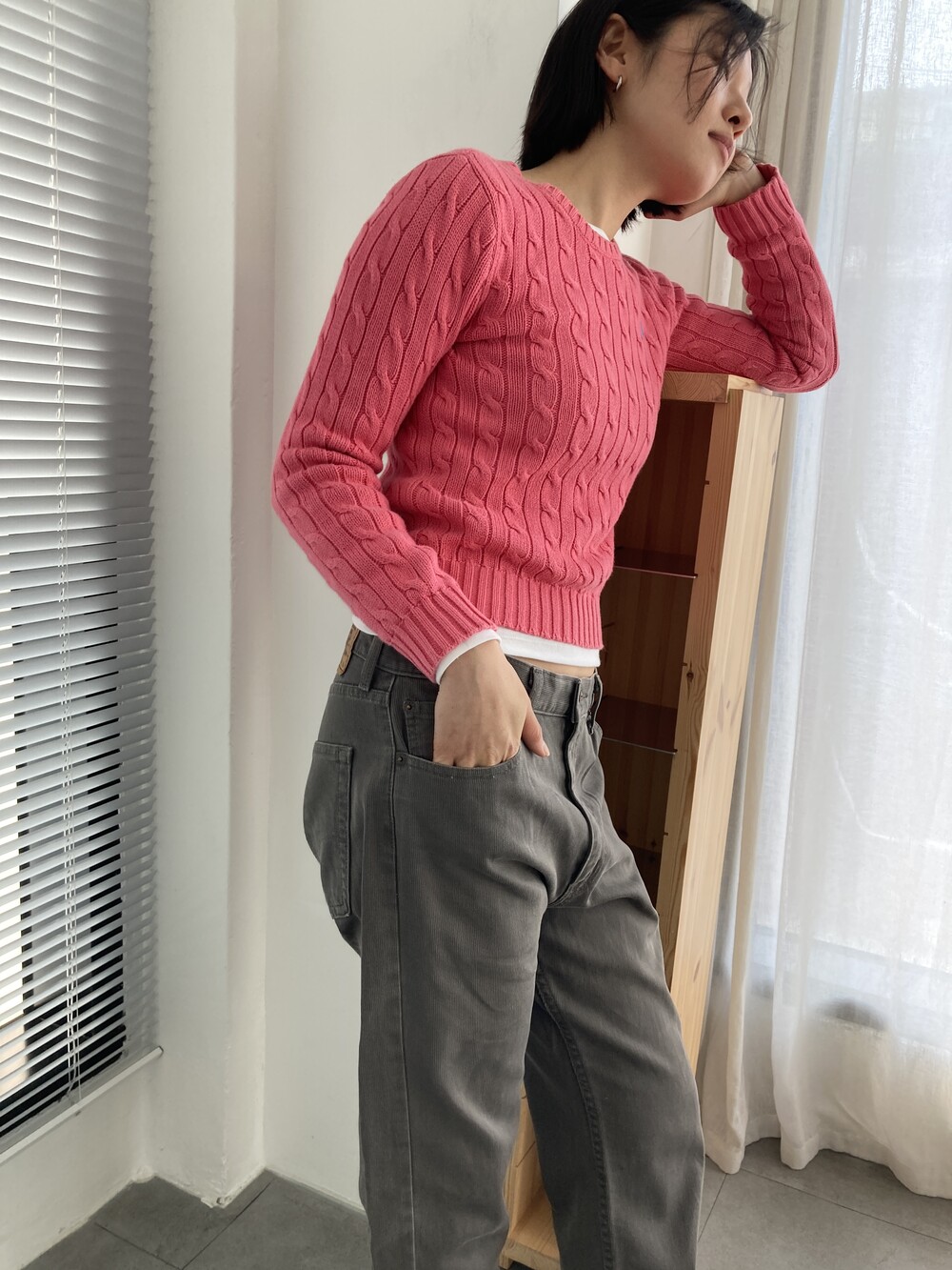 RALPH LAUREN pink cable knit