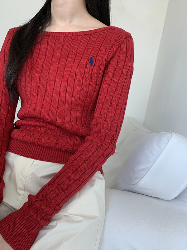 예쁜 레드 컬러의 보트넥 디자인이라 매력적이네요.