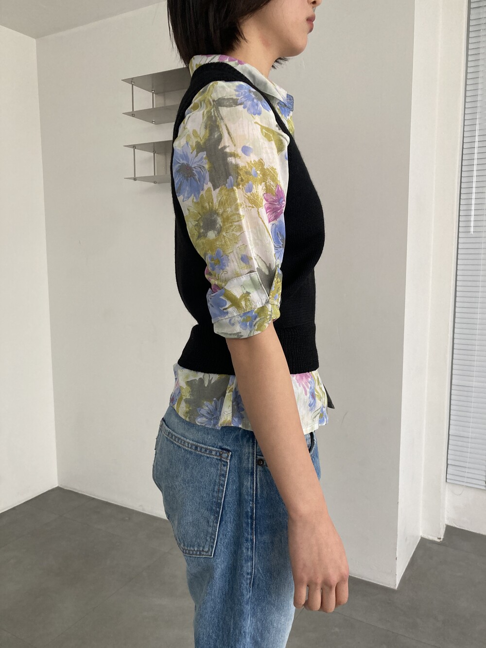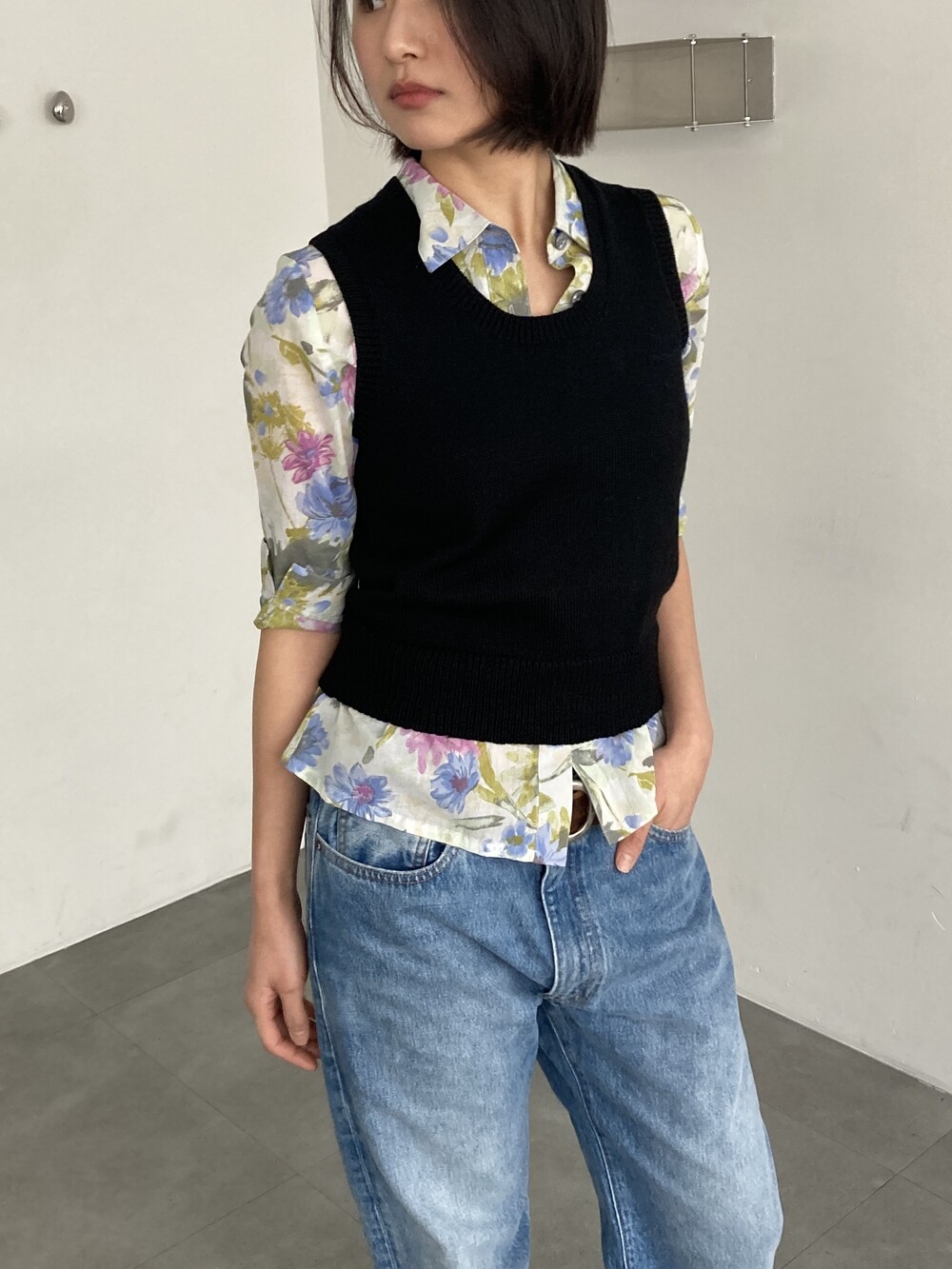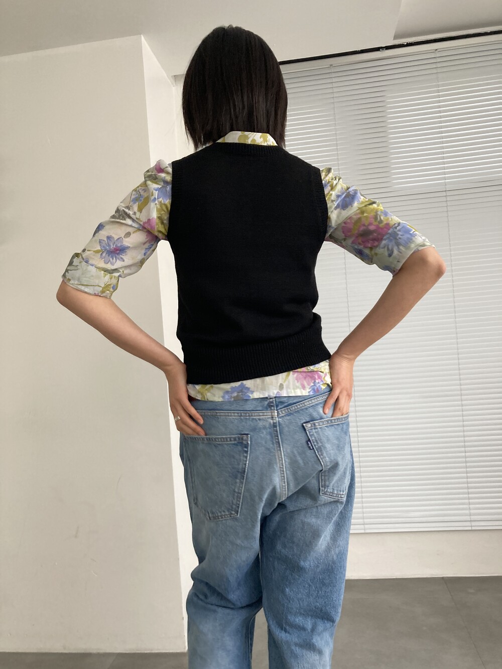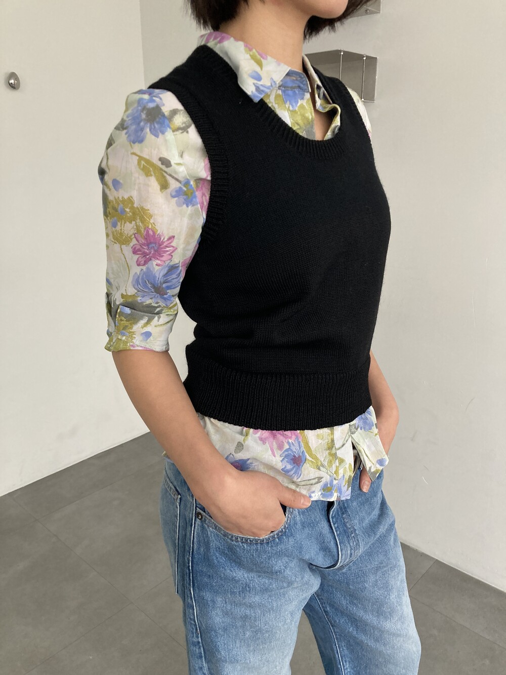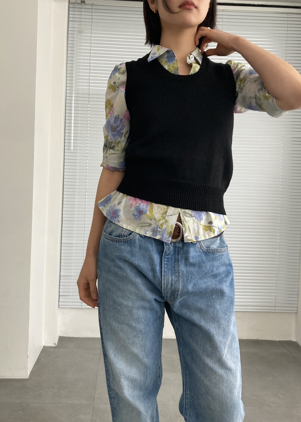 black round knit vest