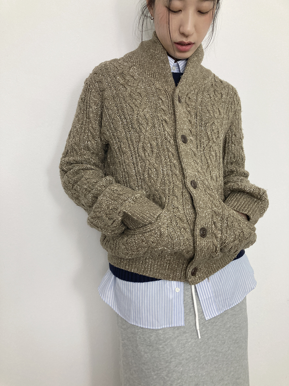 이너를 두툼히 레이어드해서 착용하기 좋을 넉넉한 사이즈입니다.