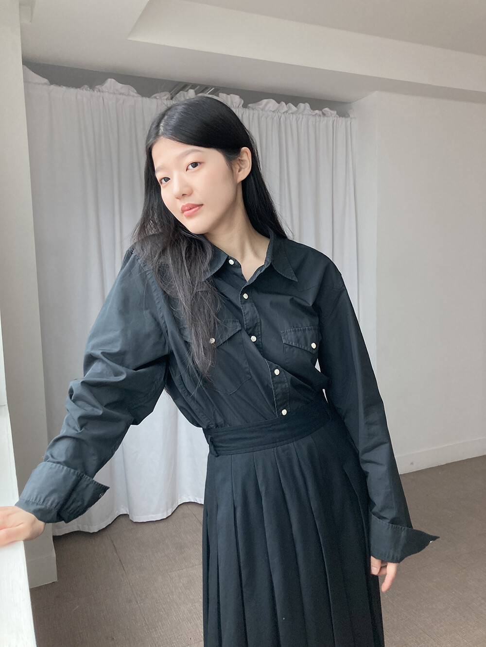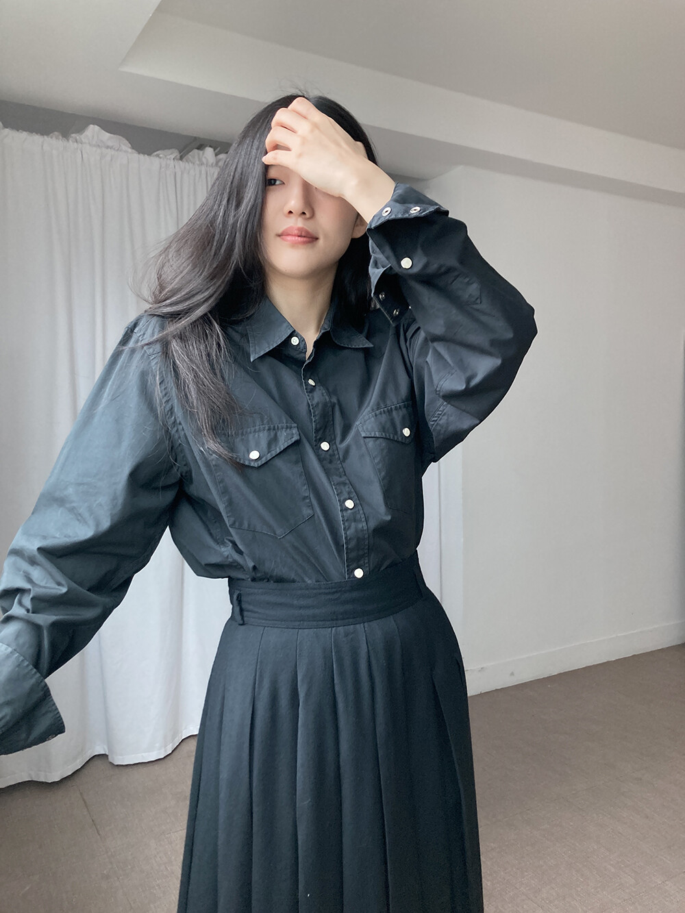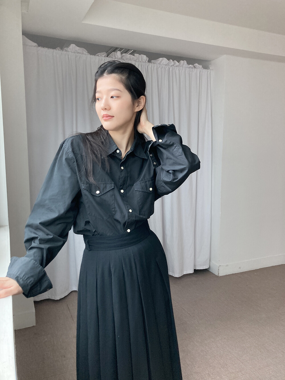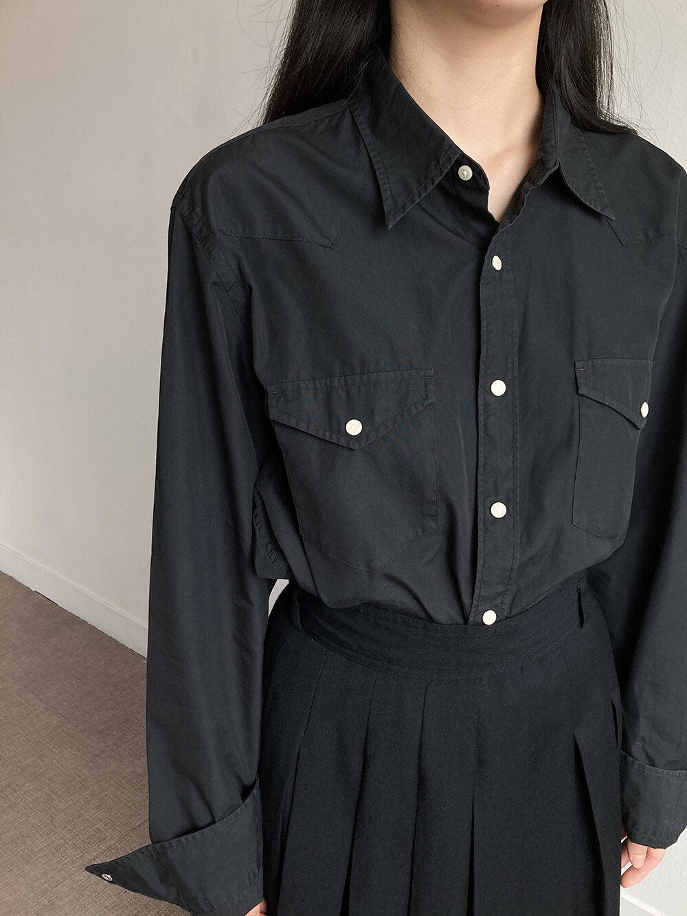 J.CREW의 블랙 코튼 셔츠입니다.